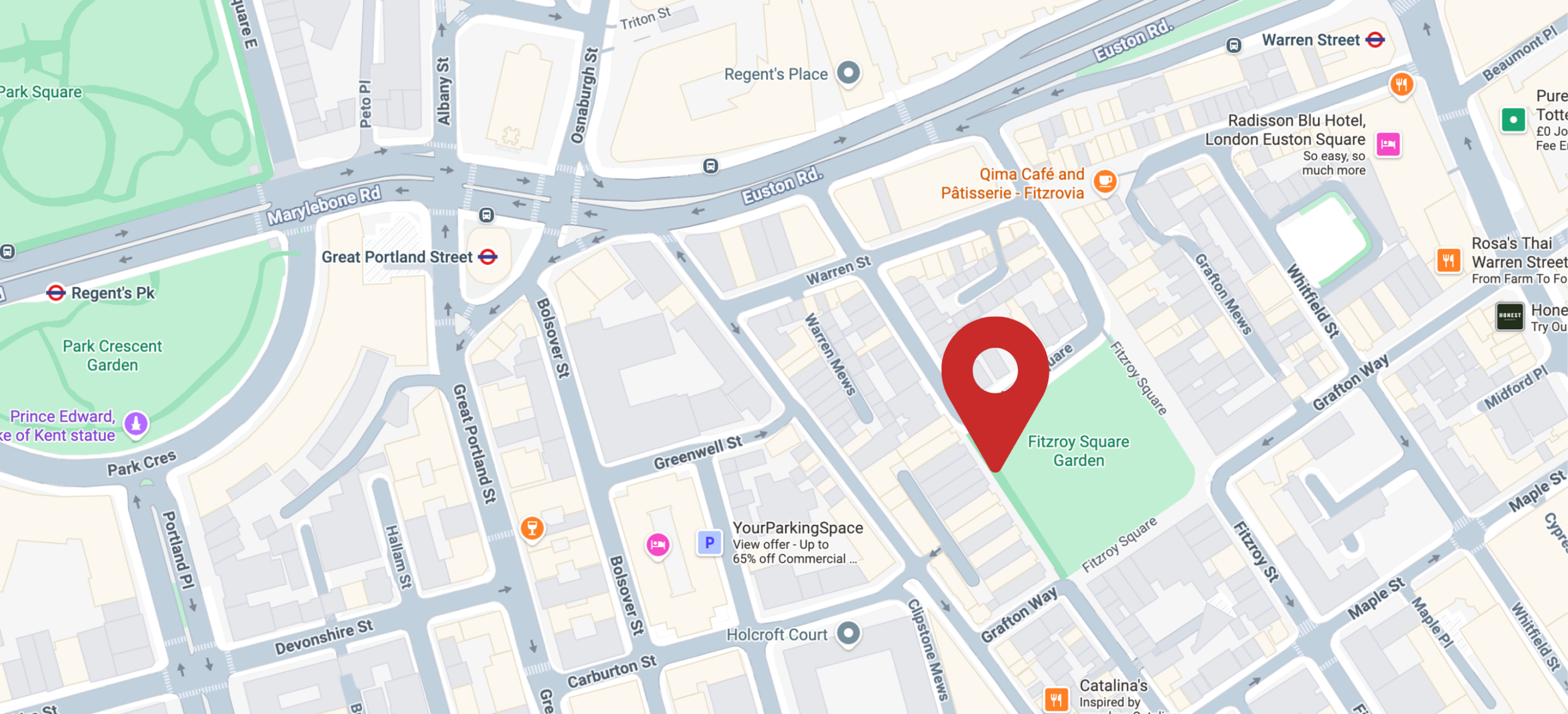 Young Film Academy is located on the stunning and iconic Fitzroy Square, known for its historic architecture and creative heritage. The building is a stone’s throw from Regents Park and within easy walking distance of Warren Street and Great Portland Street tube stations, and is also conveniently close to major transport hubs including Euston, King’s Cross, and Tottenham Court Road, ensuring excellent connectivity across London and beyond.